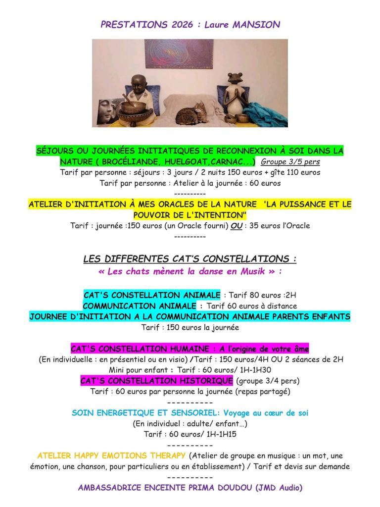 L'animal a une place très importante dans nos vies. Depuis de nombreux siècles l'animal est sous la coupe et le pouvoir de l'humain. Aujourd'hui l'animal comme la nature a besoin d'être respecter. il est là pour nous guider et nous reconnecter à notre source originelle. C'est SA MISSION. Il est dévoué et donne sans compter, sans filtre. Il va vous aider à comprendre qui vous êtes et le lien originel entre vous. C'est lui qui va vous transmettre ses messages à travers moi. c'est aussi l'occasion comme pour humain de mettre en lumière ses lignées ancestrales, maladies, comportements et de le libérer de ses fardeaux. L'animal porte vos émotions et vos blessures comme le miroir de vous même.
